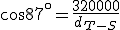 Desde luego este no es el dato real: dT-S = 150.000.000 km. Y es que, un pequeño error en el ángulo implica una variación en el coseno. El ángulo anterior vale en realidad: 89,95º. Dado que vamos a dividir un número grande como 320.000 km entre un número cercano a 0, esa pequeña variación en el ángulo de casi 3º ocasiona la gran diferencia en el resultado.